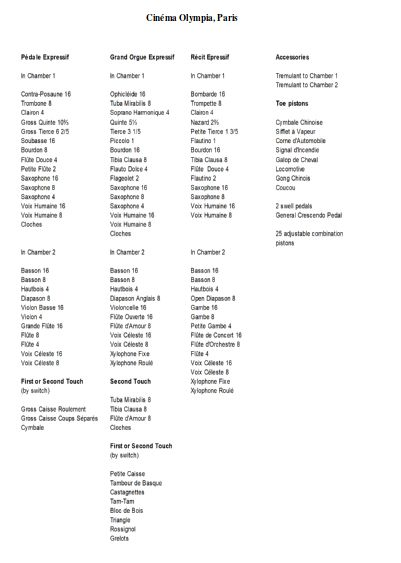 Other cinema-organs in Paris (non exhaustif)